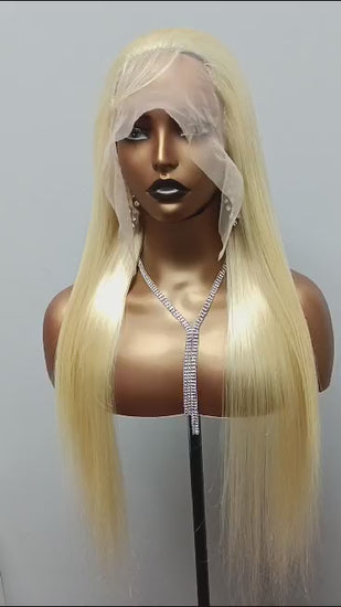613 Blonde Hair Silky Straight 13X4 Transparent Lace Front Wig